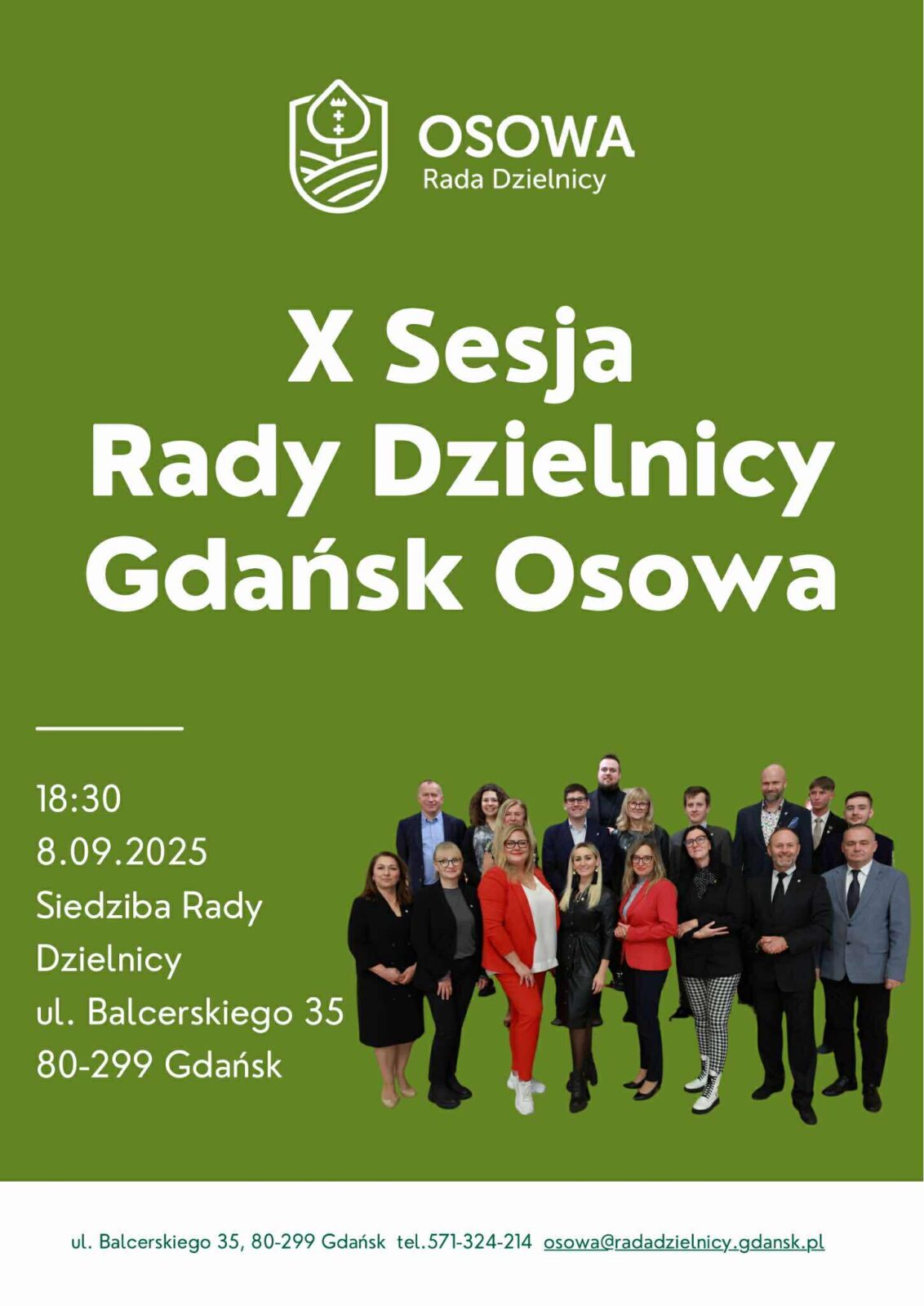 zapraszamy Państwa serdecznie na X sesję Rady Dzielnicy Osowa, która odbędzie się w najbliższy poniedziałek, 8 września 2025 r., odgodz. 18:30w trybie stacjonarnym (w naszej siedzibie przy ul. Balcerskiego 35).